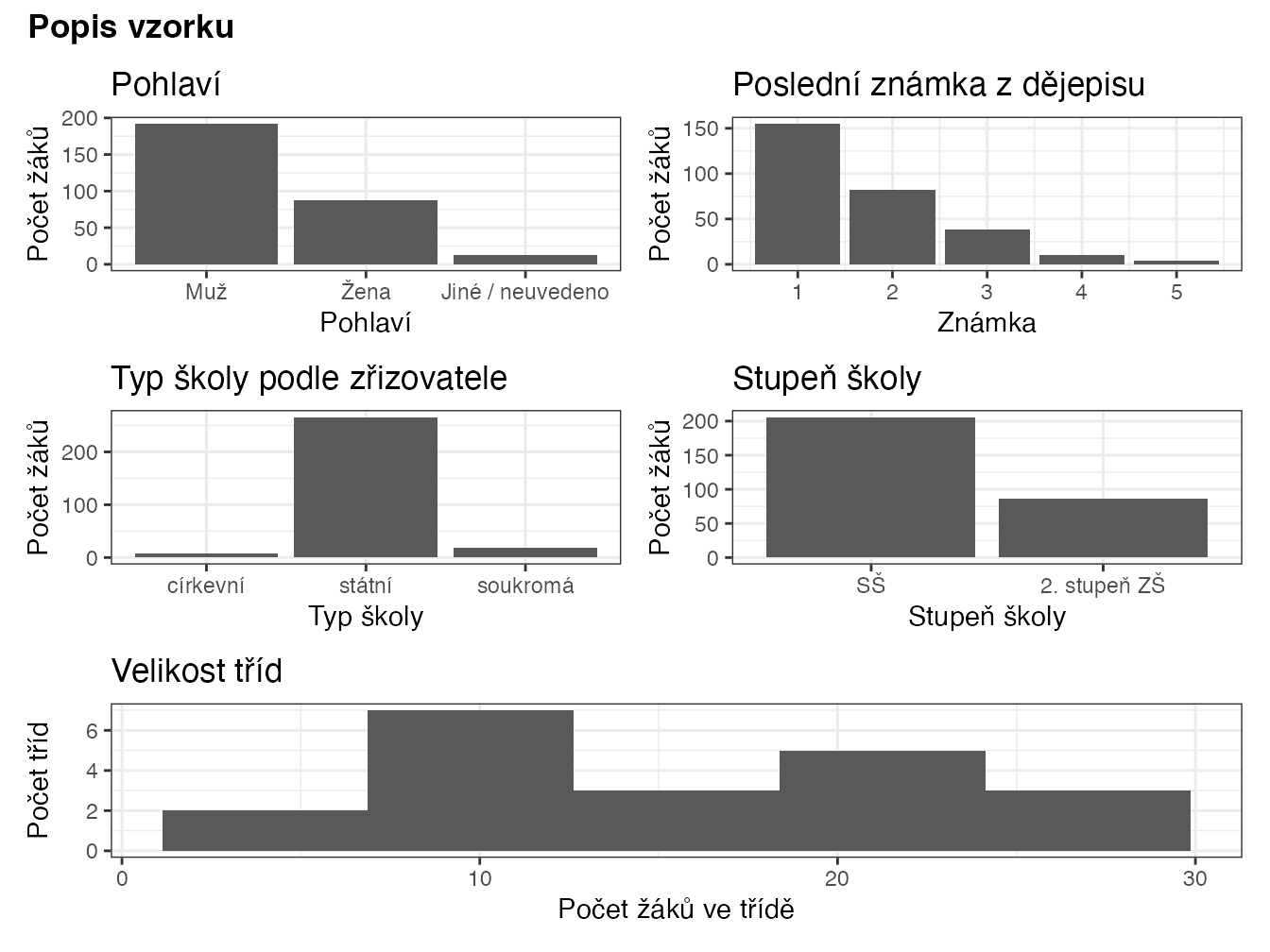 1. Základní údaje – konkrétně třída, pohlaví a poslední známka z dějepisu.